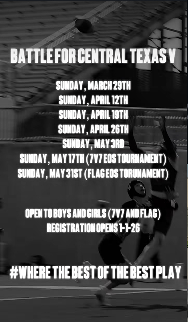 Take advantage of early bird pricing and secure your spot in Central Texas’ premier 7v7 football league!