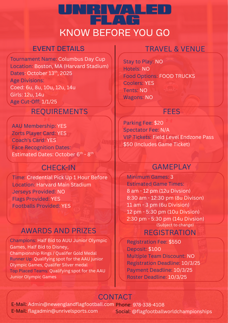 Take the field at the legendary Harvard Stadium for a high-stakes, one-day tournament! This event also serves as the 4th qualifier for the 2026 AAU Junior Olympic Games, giving teams a prime opportunity to secure their spot on the national stage.