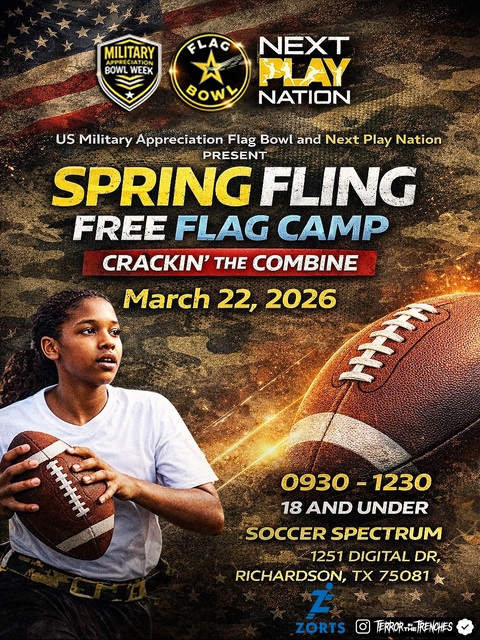 Free camp to teach young flag football athletes the tools they need to show up to a showcase or combine as polished, media-ready as possible. They will learn how to compete and carry themselves in a professional environment.