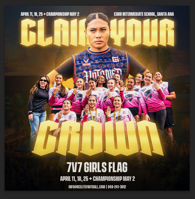 Orange County's premier girls flag football league. Four weeks of competitive 7v7 action under CIF rules, building toward a championship.