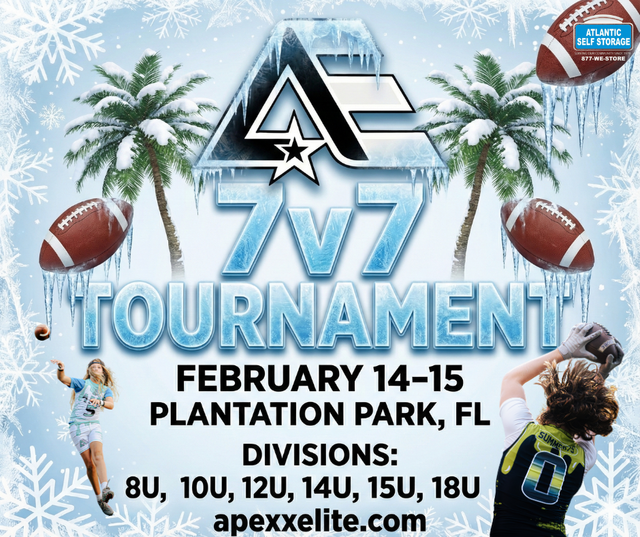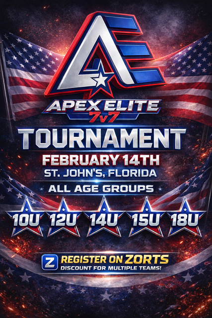 Annual President's Day Weekend Apex Elite 7v7 Tournament located in St. Johns Florida. Divisions will include 8U 10U 12U 14U 15U 18U.