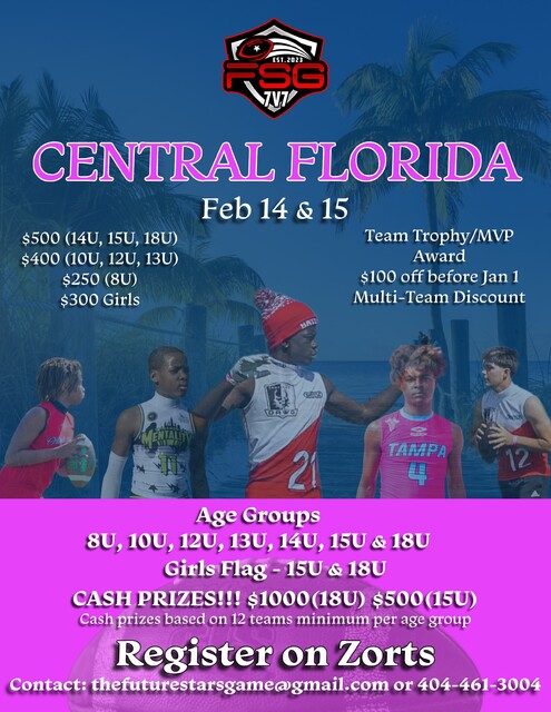 The FSG 7v7 Tournament Series, powered by I Am, gives the top 7v7 teams and Girls Flag teams the chance to compete on the prestigious FSG circuit for the title of FSG National Champs!