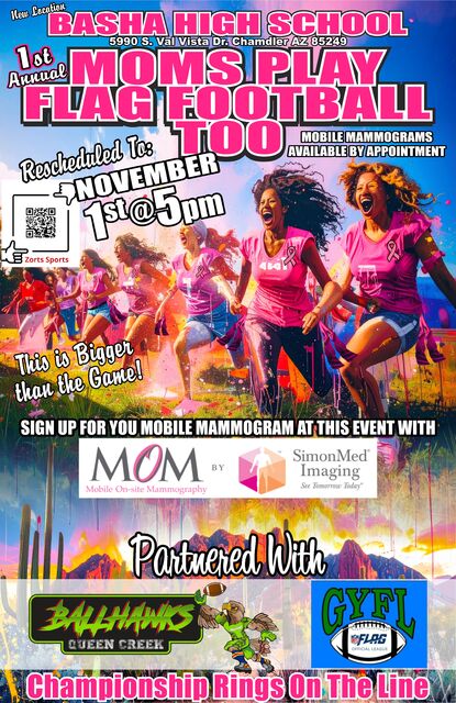 Join us for a groundbreaking event in Arizona as moms take the field for a cause bigger than the game! The 1st Annual Moms Play Flag Football Too Tournament is a 5v5 NFL FLAG–style competition designed to bring energy, community, and awareness to the fight against breast cancer.