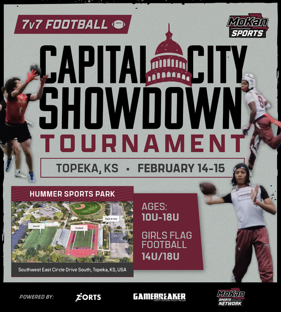 4th Annual Capital City Showdown in Topeka, KS! 10U-18U & 14U-18U Girls Flag Age Divisions. Winning teams recieve a paid bid to the MoKan Natinoal Championship in Kansas City! Come compete against some of the best in the region!