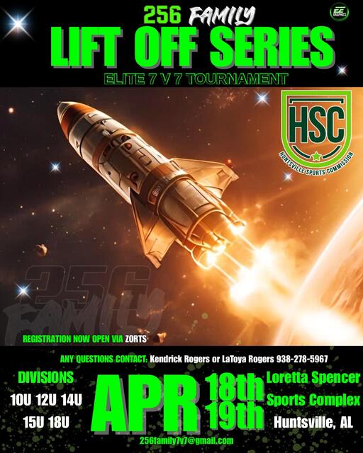We’re thrilled to launch our 1st Annual 256 Family Lift Off Series Elite 7v7 Tournament right here in the Rocket City.
