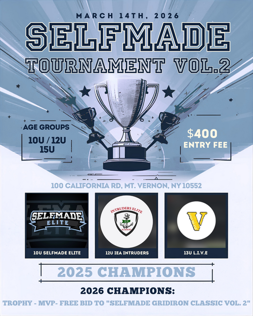π 10U / 12U / 15U Champions receive a FREE BID to the Selfmade Gridiron Classic Tournament Vol.2