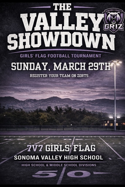 Thank you for your interest in The Valley Showdown, a competitive girls-only 7v7 flag football tournament hosted in the heart of Sonoma Valley. This one-day event brings together programs from across the region for a high-energy day of competition, community, and championship-level girls flag football.