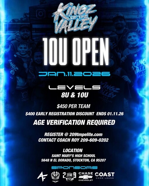 - Age Requirements: 10U: Must be 10 or younger on or before 01/01/2026