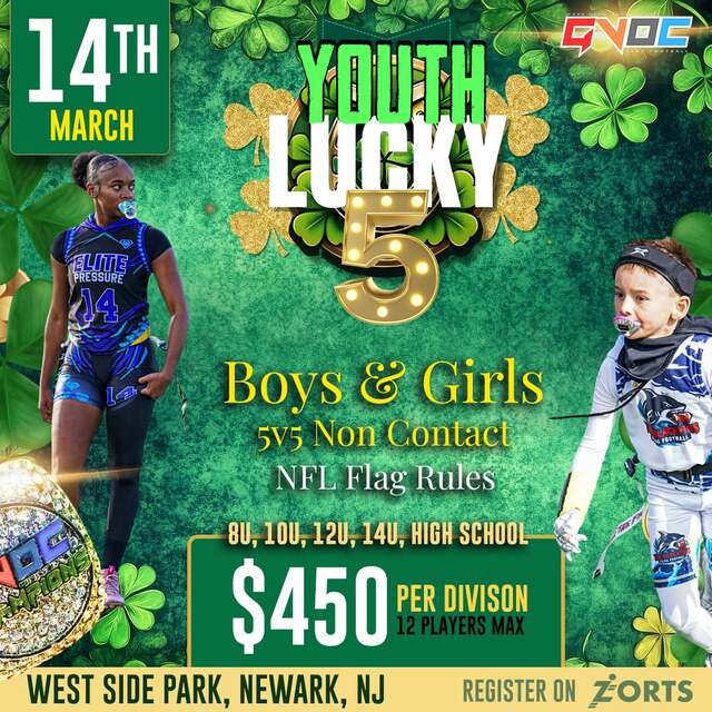 We’re excited to welcome everyone to our very first March Lucky 5’s Flag Football Tournament!