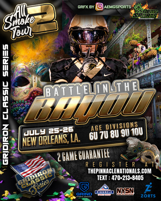 The Gridiron Classic Series proudly presents Battle in the Bayou, powered by Pinnacle National Championships—a premier summer youth football showdown set in the heart of New Orleans.