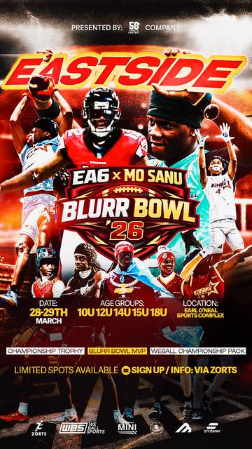 The Blurr Bowl is where elite 7v7 programs come to compete, connect, and create moments that go viral. Hosted by EA6 and powered by 50 Sports Company, this event brings together top talent from across the region for a fast-paced, high-exposure tournament experience.