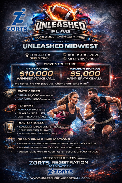 The Midwest stop of the 2026 UNLEASHED Adult Cash Cup Series brings elite non-contact 5v5 competition to Chicago.