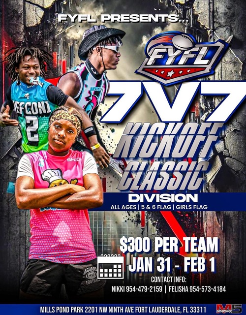 Ages 5-7 unlimited rushing attempts, will be flag, but played under 7V7 format.