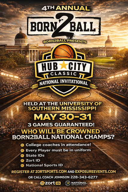 a two day event 3 games guranteed national tournament played at the university of southern mississippi in hattiesburg mississippi at the payne center winners of each grade division will recieve custom championship rings also individual mvp awards will be awarded grades 3rd grade - varsity highschool boys and girls $250 Per Team With Multiple Team Discounts AVAILABLE FOR MORE INFORMATION CONTACT COACH JOHNSON @ 2283436277 OR EMAIL BORN2BALLSPORT@GMAIL.COM