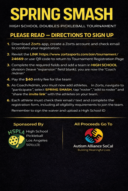 Sponsored by High School Pickleball Los Angeles 501(c)(3)