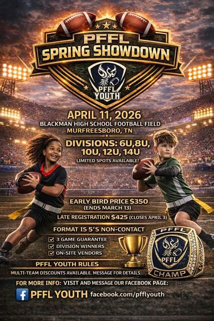 We look forward to hosting your team at the PFFL Spring Showdown and delivering a top-tier youth football experience.