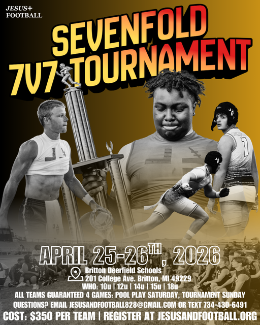 2026 SE MICHIGAN SEVENFOLD 7v7 TOURNAMENT: 12u, 14u, 15u, 18u. April 25th-26th, 2026. Address: 201 College Ave, Britton, MI. Britton Deerfield High School. Come join the BEST ATHLETES in Michigan for a weekend of COMPETITION!