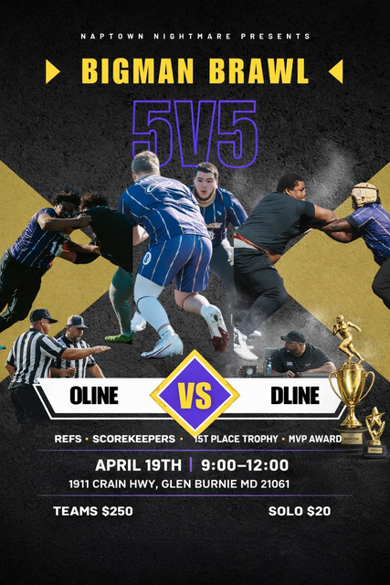 Athletes will be competing in fast-paced formats that emphasize technique, physicality, competitiveness, and football IQ. Teams and individual athletes are welcome to register, with individual players grouped together to form teams, ensuring balanced competition and maximum reps. This event is designed to give linemen a dedicated stage to compete, develop, and stand out in a true trench-focused environment.