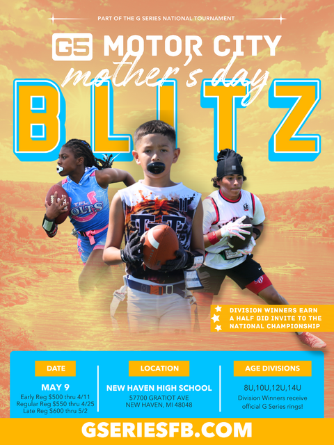 The Gridiron G-Series is the premier 5v5 and 7v7 tournament experience for competitive boys and girls teams from across the Nation! Visit GSERIES.COM to view the full Regional and National circuit schedule.
