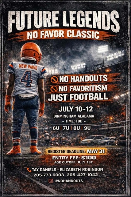 The Future Legends: No Favor Classic is a competitive youth football tournament designed to bring together top teams for a high-level, well-organized event focused on skill development, sportsmanship, and fair play.