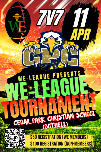OPENING TOURNAMENT OF THE 2025 W.E. LEAUGE 7V7 & 5V5 SPRING SEASON. REGISTRATION $50 WE LEAGUE MEMBERS/$100 NON-MEMBERS.