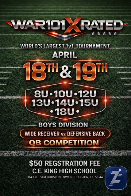 This event features a Wide Receiver vs Defensive Back 1v1 format, giving athletes the chance to showcase their route running, coverage skills, speed, and overall football IQ.
