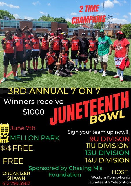 3rd Annual Juneteenth Bowl winners receive $1000. This tournament is free to enter.