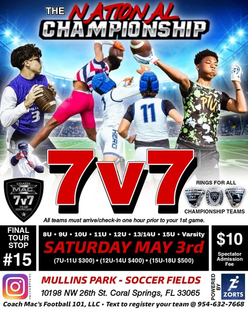 COACH MAC PRESENTS THE 2025 "NATIONAL CHAMPIONSHP"! MAY 3RD IN CORAL SPRINGS, FL! REGISTER NOW!