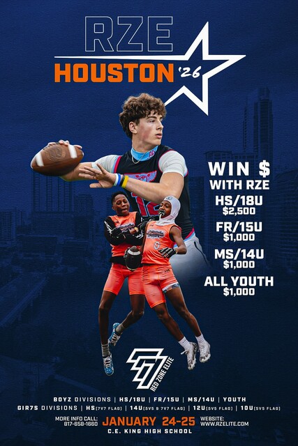 Red Zone Elite (RZE7) is one of the largest and most prestigious 7v7 tournament series in the country, hosting 25+ events nationwide. RZE events bring together strong programs, elite athletes, and real competition in a high-level, competitive, and fun environment built for athletes who want to be challenged and seen.