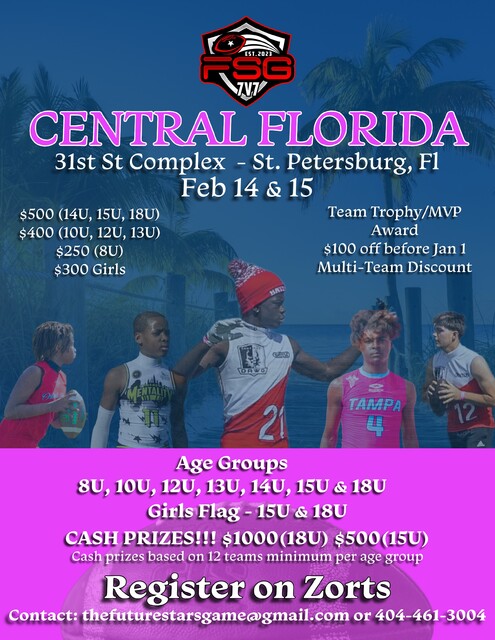 The FSG 7v7 Tournament Series, powered by I Am, gives the top 7v7 teams and Girls Flag teams the chance to compete on the prestigious FSG circuit for the title of FSG National Champs!